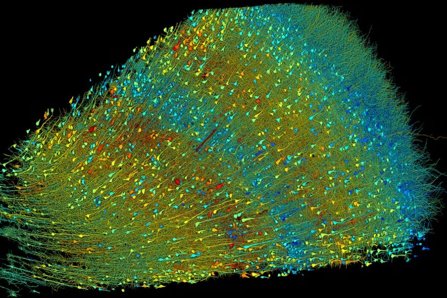 Fruit de leurs travaux, une carte en trois dimensions de l’échantillon de cerveau étudié montre l’enchevêtrement de connexions entre les dizaines de milliers de neurones. Ces travaux ont permis aux chercheurs d’observer la répartition de ces derniers suivant leur type et plusieurs cas de connexions rarement observées entre eux. Reste que si l'étude de ce petit échantillon est une avancée indéniable, la route est encore longue pour cartographier les 1500 centimètres cubes de notre cerveau. 🧠