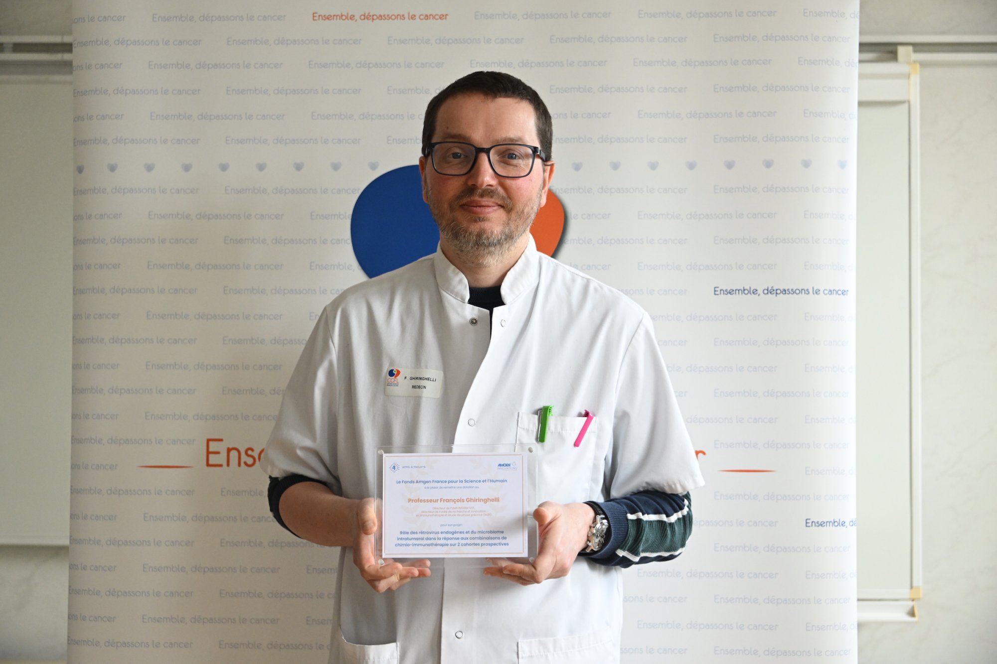 Lors de la cérémonie de remise des prix du Fonds Amgen France pour la Science et l'Humain, le Professeur François Ghiringhelli, du Centre de Lutte Contre le Cancer Georges-François Leclerc (CGFL) à Dijon, a été distingué pour son projet novateur intitulé “Rôle des rétrovirus endogènes et du microbiome intratumoral dans la réponse aux combinaisons de chimio-immunothérapie sur 2 cohortes prospectives”. 📝